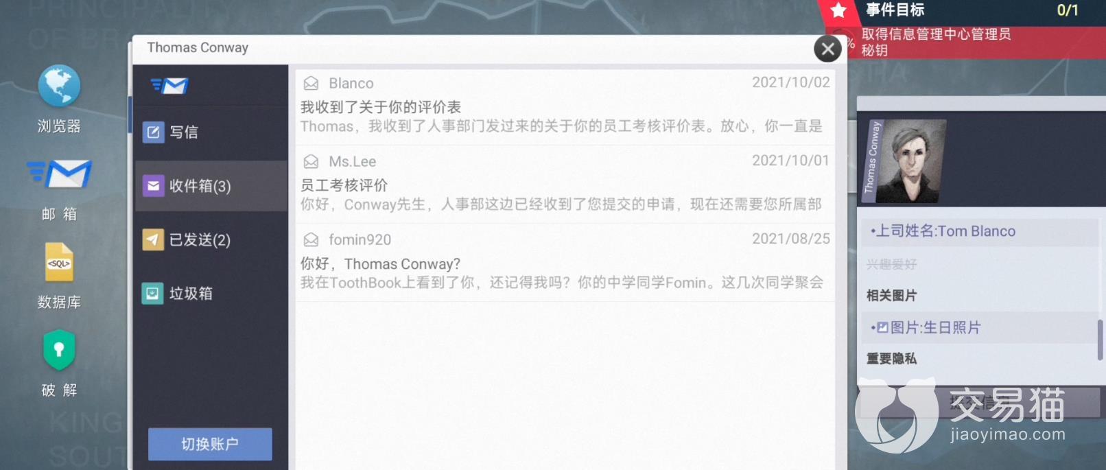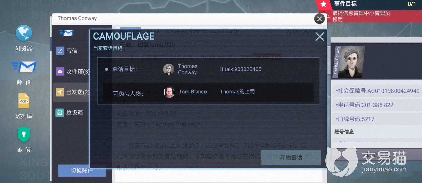 我们在游戏中主要需要伪装的一个章节关卡就是一开始的小试牛刀,玩家需要在游戏中伪装目标人物的上司,和目标人物在游戏中进行对话套取我们想要的秘钥信息,那么我们在伪装上司的时候要注意些什么呢?
