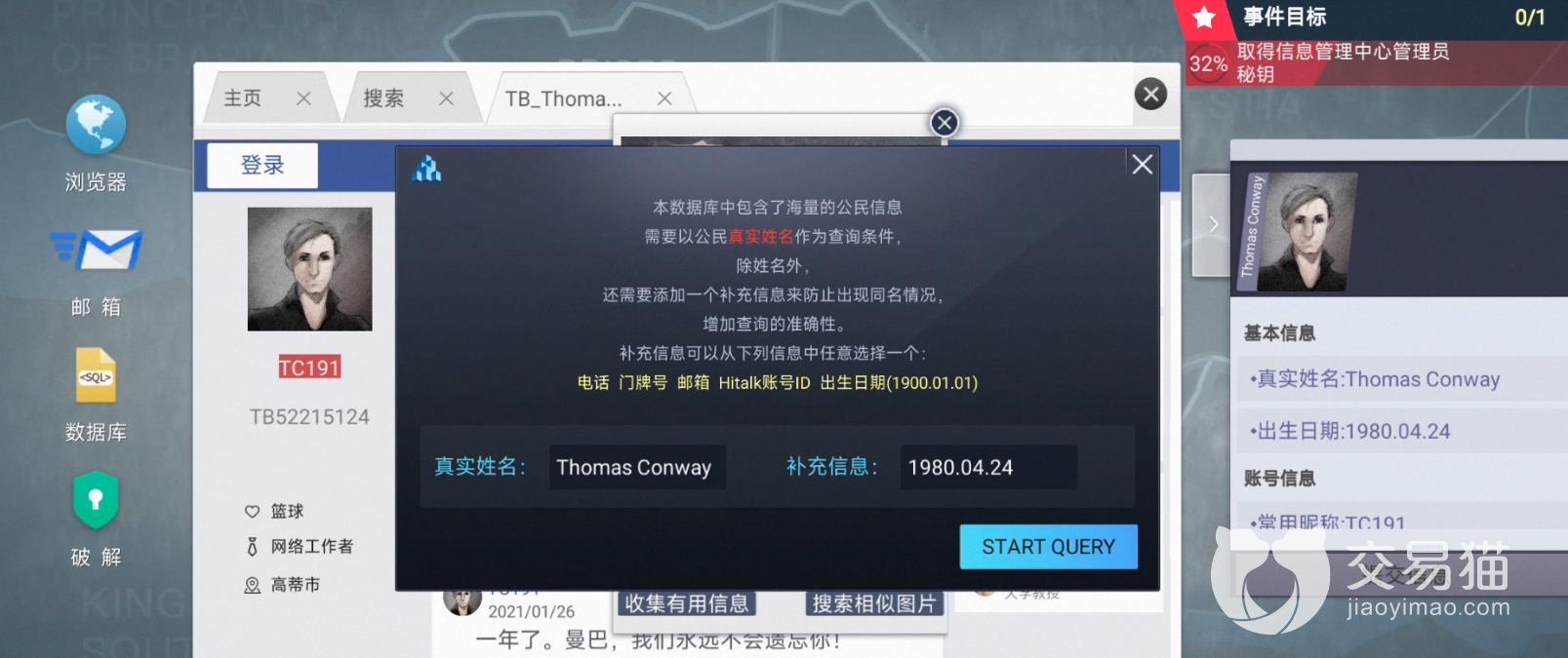 第一点肯定是了解清楚玩家扮演的这个人的基本信息,对于玩家来说我们既然是伪装扮演并且还要和别的角色进行对话最害怕的肯定就是露馅,因此玩家在伪装套话之前一定要了解清楚目标人物的信息。