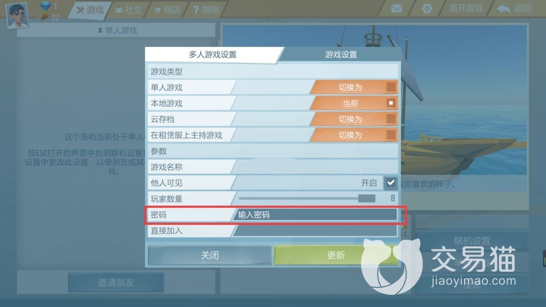 这里可以设置一下自己的房间名还有进入密码,并且确定可以参与进来的玩家人数,确定之后就算是完成一个房间的建立了。然后将自己的房间名告诉给想要加进来的好友,让他在游戏的多人大厅中搜寻自己的房间名,并输入正确的密码就可以进来了。