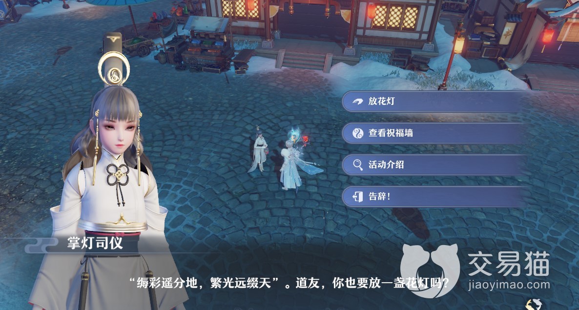 花灯祈福活动从1月12号开始截止1月20日,共持续9天。期间每天在河阳城的华灯仙子那里购买华灯,然后在华灯司仪那里放飞花灯就可以得到随机奖励,以及一串数字组成的福签,用于21号晚上8点的抽奖活动。
