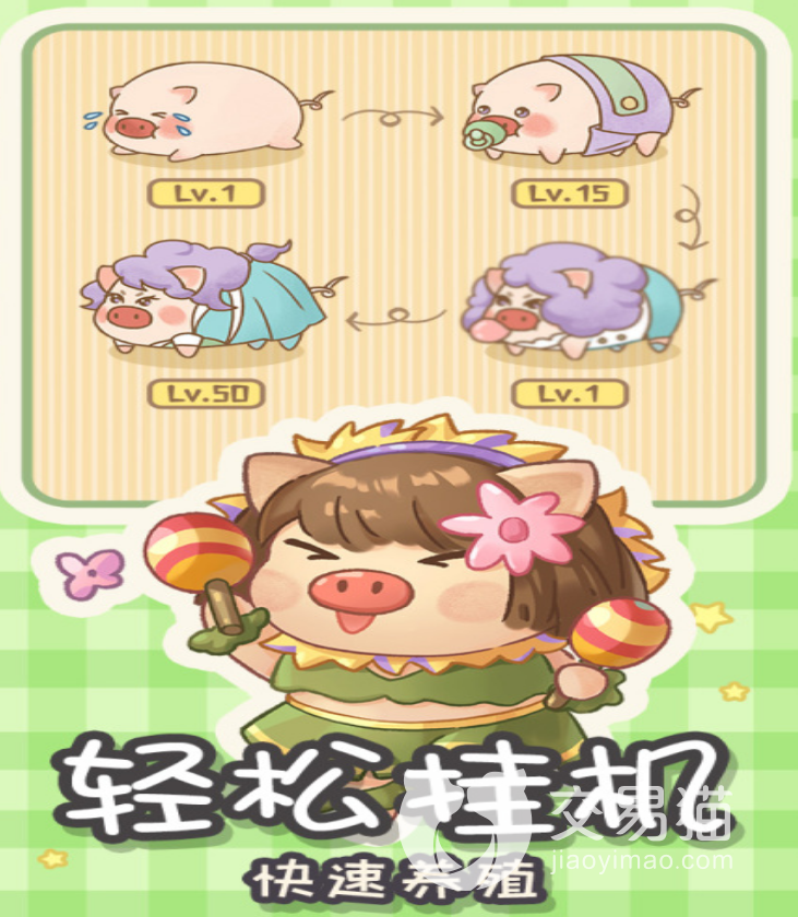 多余的钱财我们也可以去升级自己的养猪场,不然小猪们是没有位置的,前期没有太多复杂的操作,我们只要跟着教程操作就可以快速获取更多的猪仔,之后一点点养成就可以,游戏内也会有很多的配料,猪仔们只有迟到营养比较高的食物才能长得更加健壮,玩家们要花费心思去研究。