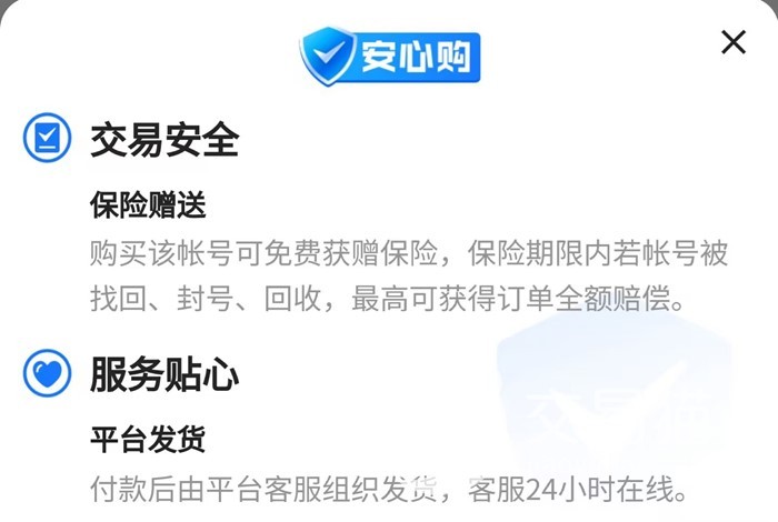 小伙伴们买号最担心的肯定就是安全问题,交易猫这个平台完美的考虑到了用户担心的问题。平台上所有的卖家都是要进行实名认证,平台审核之后才可以发布账号信息。所以小伙伴们担心的骗子上来卖号的行为已经是被平台严格屏蔽了的。为了让用户安心交易猫还为部分商品赠送保险,更是有24小时客服在线为小伙伴们解决问题。