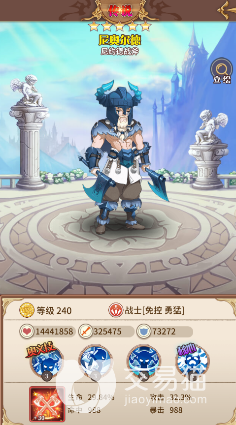 这个角色的职业是战士,主打免控,它的技能“风之所在”可以让他通过消耗血量来飞越对面随机一名目标,并且对其造成高额的物理伤害,除此之外还能对此目标和其周围的敌人造成一秒的嘲讽效果,其奥义技“绝海勇士”还可以让他清除斌免疫所有负面状态,还能为自己提高攻击力以及吸血效果,是一个非常适合放在前排的角色。