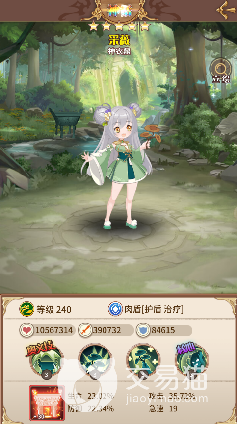 她也是一个防御类型的职业,其技能“承天”可以让她将面前所有的敌人都抛出去,并且对目标造成189%的魔法伤害,同时自己获得一个20%免的伤效果,并持续5秒,如果这个技能升到了3级,那不仅可以增加伤害,在她每抛飞一个目标的时候都可以为自己获取50点能量,然后她的奥义技“寿考天地”可以为己方所有队友添加一个护盾,且持续7秒。