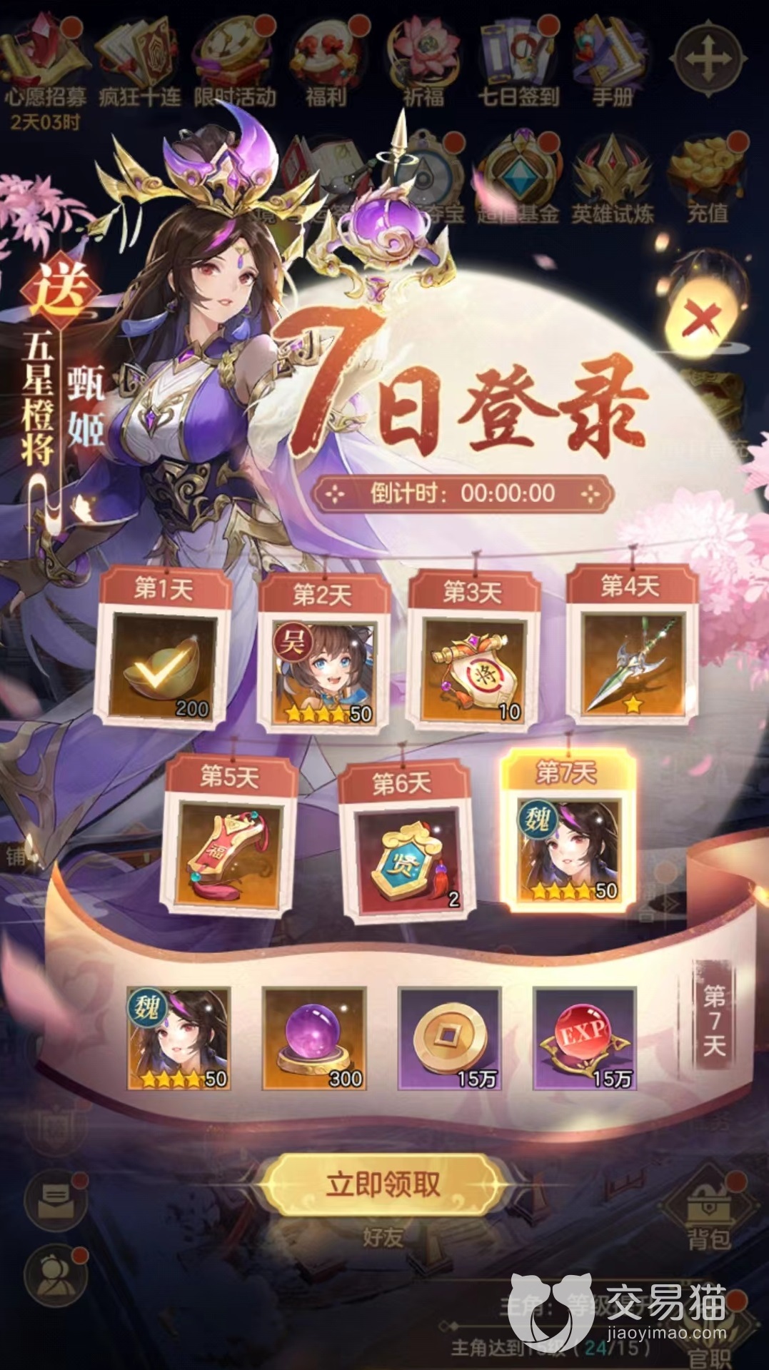 抽武将的道具可以通过道具,商铺,集市,礼包,商城,祈福系统,赏金任务等诸多途径来获取。在新开服还会有大量名将册赠送,所以在前期获取几个名将根本不是问题。除了抽取之外还有其他很多渠道,例如在新开服通过7日登陆,在第7天就会赠送魏国名将甄姬。进行一次首充,可以奖励蜀国武将赵云以及大量名将册和进阶丹等奖励。