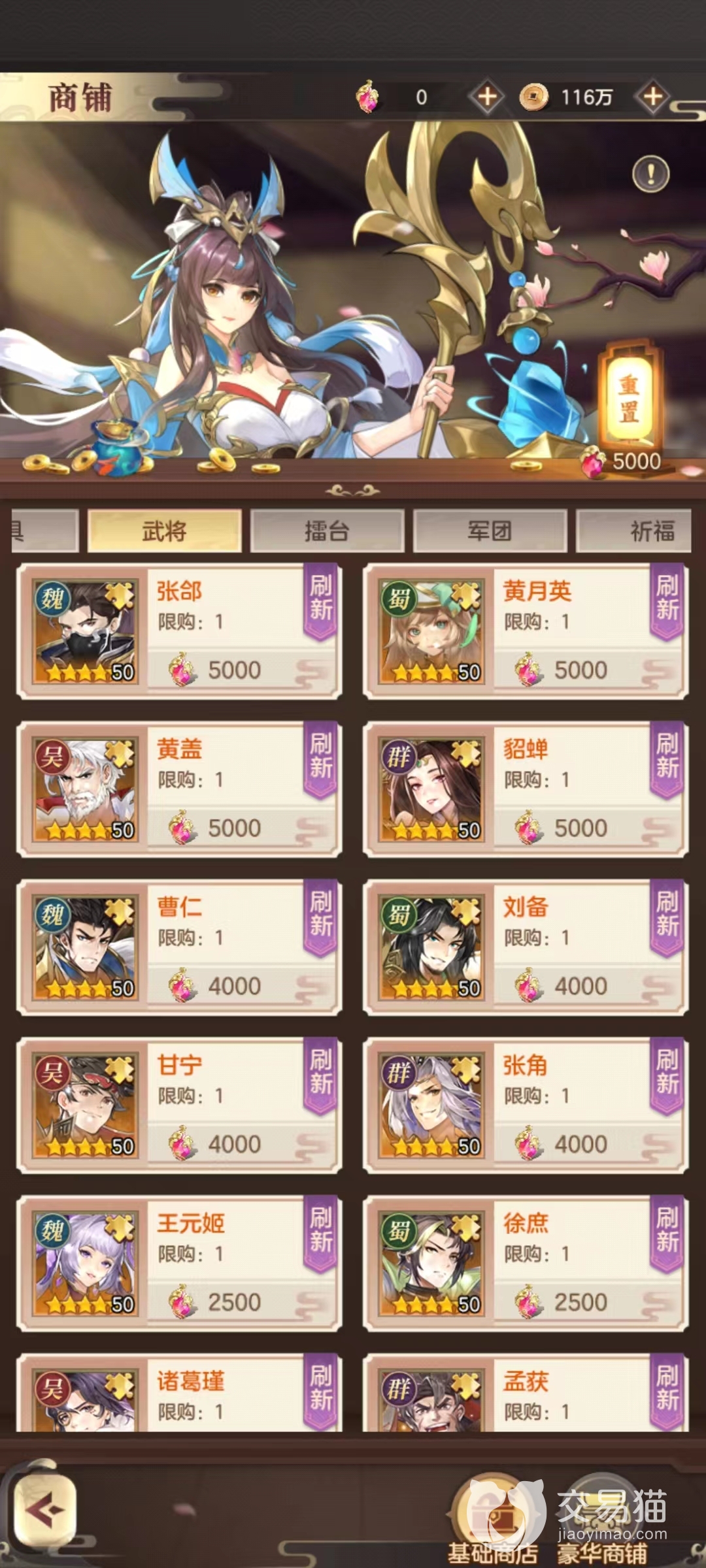 部分名将也可以在商铺中购买到,但是需要去专属的武将商店,这里消耗的将魂需要通过分解其他武将才能获得。平常抽取到的低星武将和用不到的角色都可以在铜雀台中分解获得匠魂,然后在这里直接购买。武将商店中有很多非常强势的角色,例如张郃,黄月英,貂蝉,张角等,如果以这些武将作为核心少碎片,完全可以通过购买的渠道获取。同样能够获得碎片的还有擂台商店,军团商店,将军府等,都需要通过各自的活动获得道具后来兑换到名将。