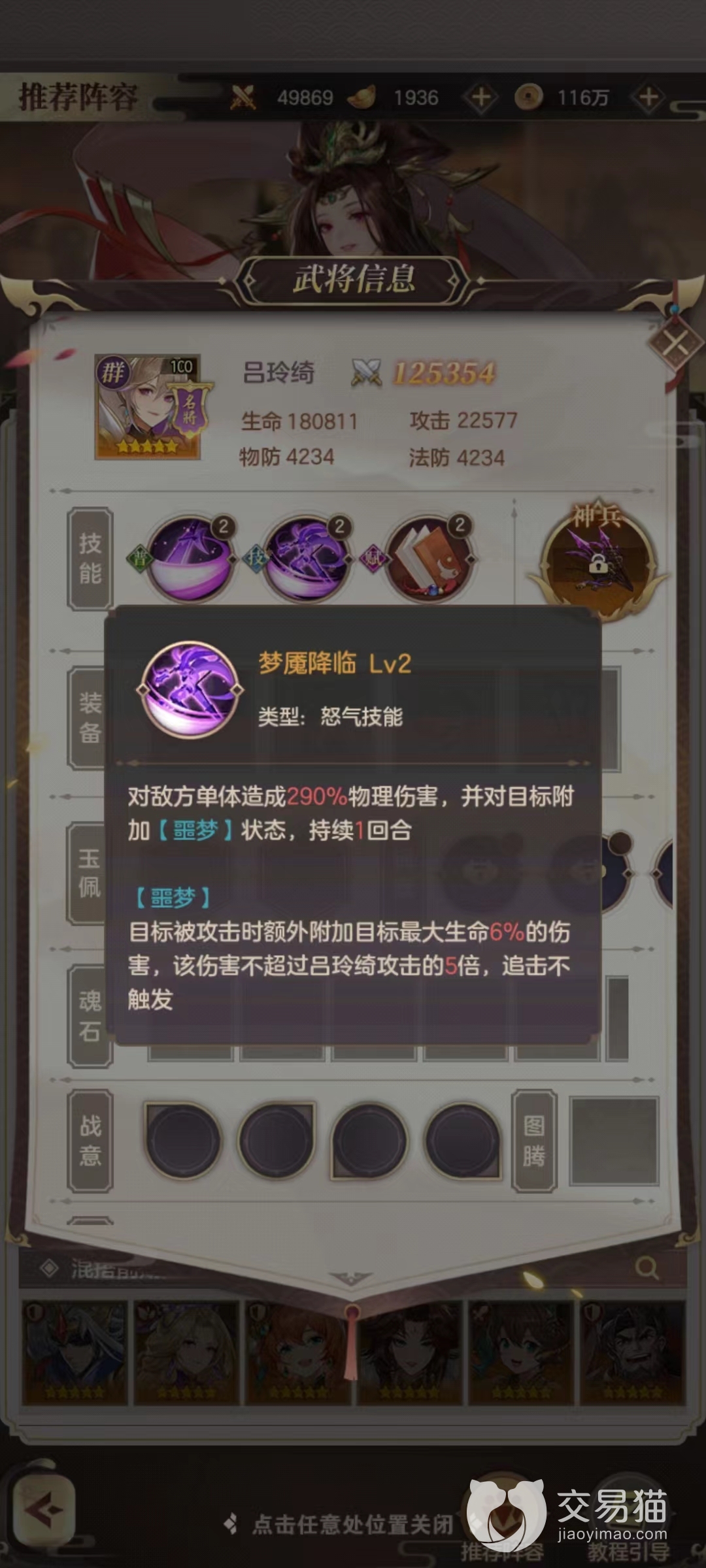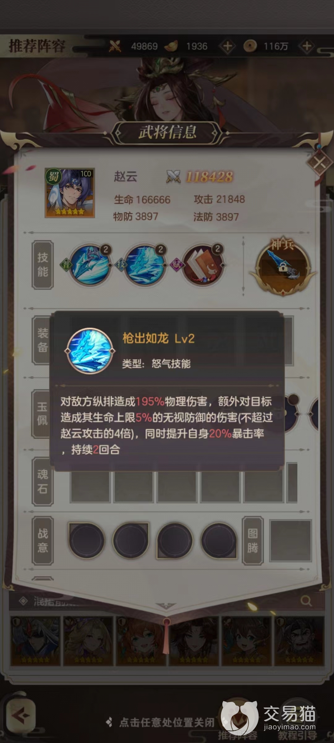 这里面的核心武将是赵云和吕玲绮,赵云作为首充赠送的武将在实力上自然非常强势,即使是在前期橙色品质的时候也有很好的输出。利用怒气技能攻击敌方纵列还有额外伤害,附加在使用技能的时候自身暴击率提高,一旦培养起来做到枪枪暴击将是敌方的噩梦。吕玲绮属于名将类型,怒气技能梦魇降临,对敌方单体造成高额伤害并且附加噩梦状态。被噩梦所影响的敌方武将会在受到攻击时额外附加伤害,无论是自己还是其他队友都能够触发。