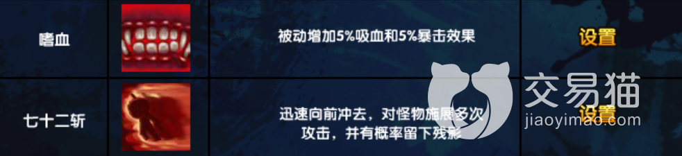 游戏中一个人物可携带最多五个技能,悟空也不例外,这里推荐大家使用“重斩+嗜血+七十二斩+烈焰闪+火眼金睛”这套方案,先说重斩,它虽然范围仅限于悟空的面前,但胜在CD短,伤害高,而且还附带击飞效果,所以很多时候能很好的衔接在普攻后面。