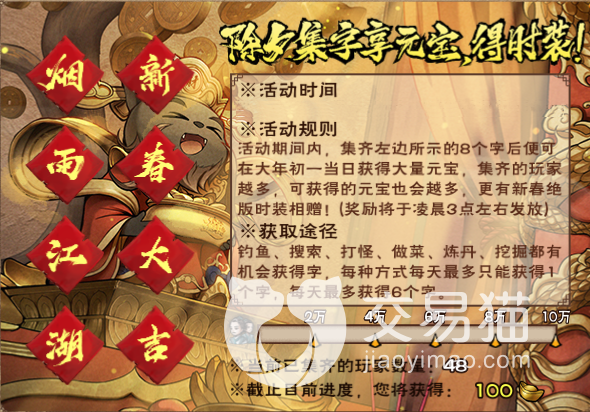 新春集五福,烟雨江湖里也举办了集字活动,收集8个字就可以在年初一当天得到超多元宝,以及新春绝版皮肤。此外还有签到、首充重置、累充活动、春节礼盒等一系列福利活动。