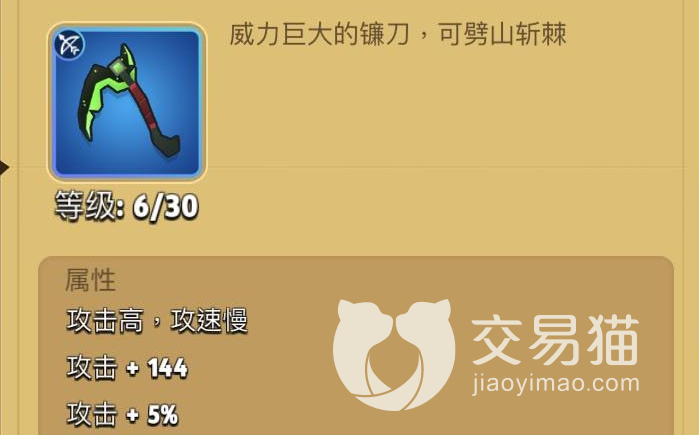 这里首要推荐的是游戏中的镰刀,对多数玩家来说这是一件很不错的武器,因为它的攻击力是很高的,而且其攻击速度也是比较快的,不过在使用的时候得注意卡它的攻击后摇。