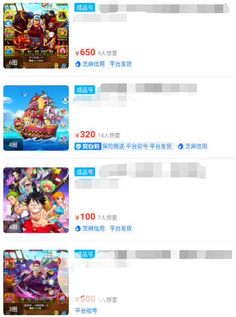 交易猫上的商品种类是很多的,其中不乏定价接近千元的高端账号,在这些号上玩家能充分体验到后期大成阵容的统治力,其中像赤犬,卡塔库栗等高阶人物都能被玩家尽情体验。当然,买号的时候肯定不能只看标题,交易猫对于商品展示这块是很丰富的,每个账号都会标注出当前想要人数,此外,点进具体商品,还有大量账号内图片可供查看。