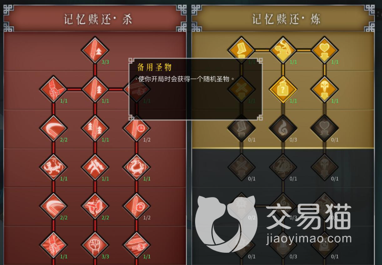 这在里有几个必点的小编给大家说一下,一个是可以让我们可以复活一次的“复燃”,然后是可以让我们开局的时候获得一个随机圣物的“备用圣物”,以及可以让我们增加获得传说圣物几率的“好运连连”,最后则是可以让我们在开局的时候获得一本秘籍的“有备而来”。