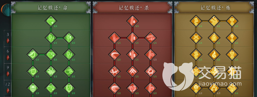 然后在接下来就可以主点“记忆赎还·杀”了,也就是红色的这一列,它主要加的是我们的攻击,所以在我们缺少战斗力的时候,它就非常重要了,最后才是点黄色的。