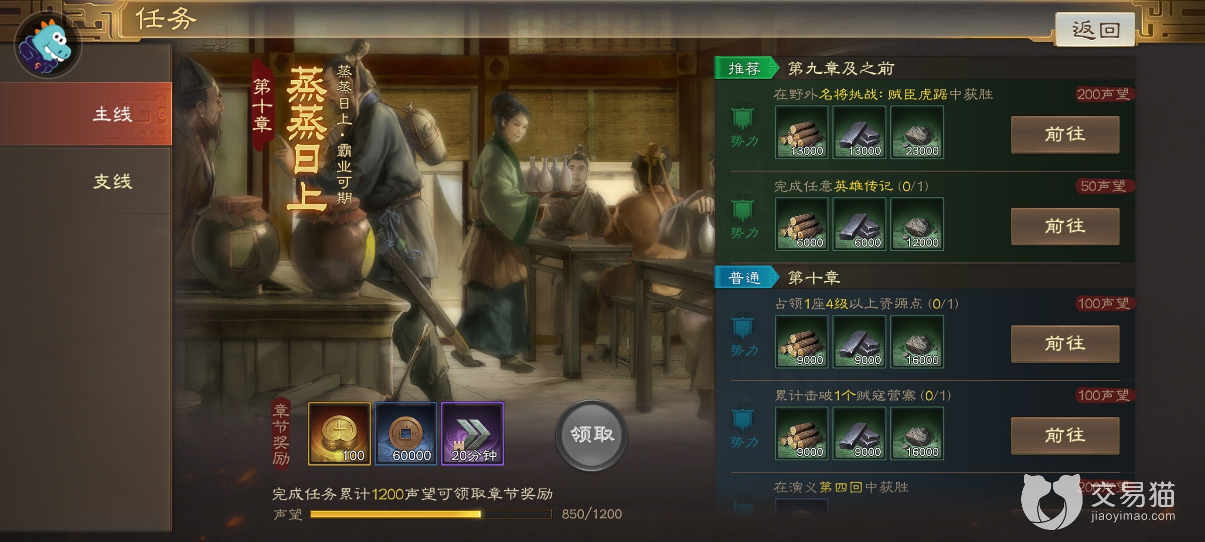 游戏当中的主线是最为重要的玩法,点击左边任务竹简就能看到章节任务了,任务的要求就是给玩家熟悉游戏以及赠送资源的,完成一个章节可以白嫖一百金铢和二十分钟的建筑时间,前面玩家没有那么多的安排优先将这个任务完成可以得到最快的发展,章节对游戏的进程没有任何的影响,只是赠送的资源对于前面的发展异常的重要,难度都是不太大的任务,需要玩家多多跑地图和修建建筑。