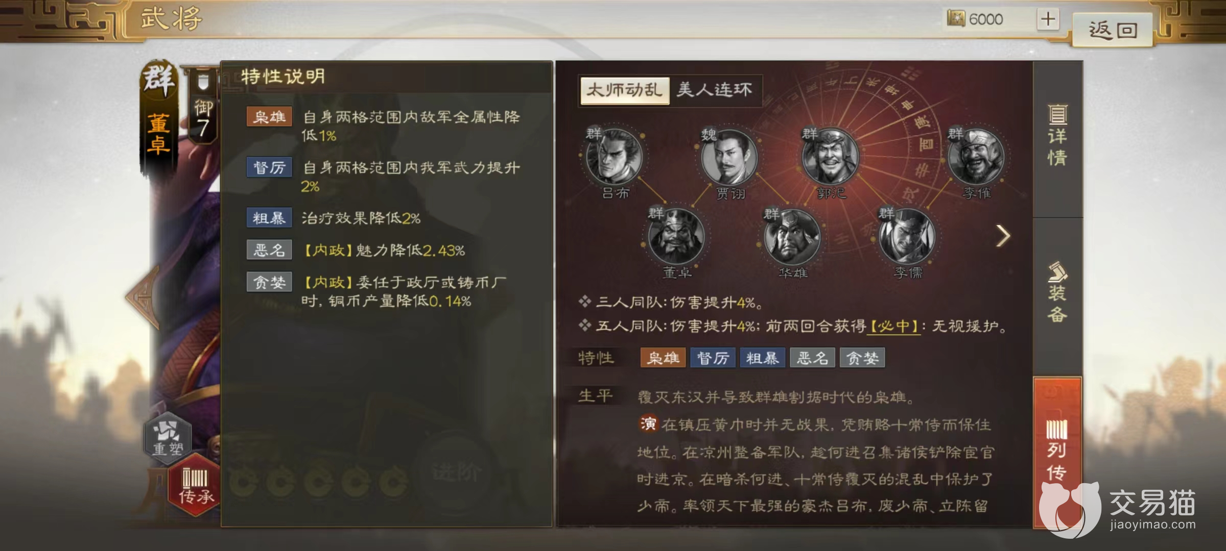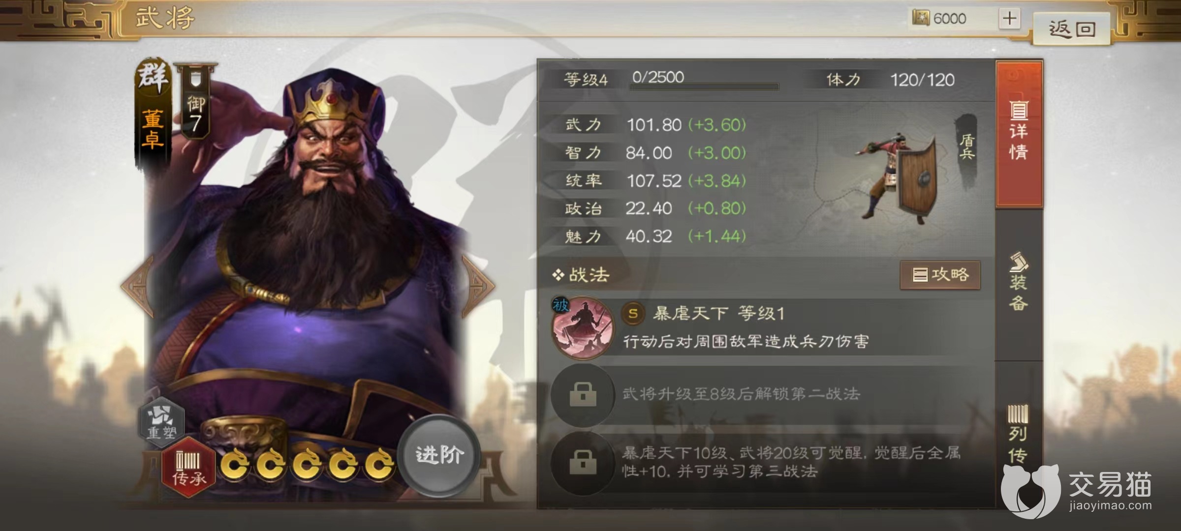 董卓是在三国历史上留下了重重一笔的历史人物,而且根据历史记载自身也是非常强势的武力型武将,这一点在三国志战棋版中也得到了很好的体现,今天小编来讲一下三国志战棋版董卓值得培养吗。在三国志战棋版中设计出的每一个角色都有自己独特的战法和搭配。而评价一名武将,就需要从属性、战法等多个方面来进行。