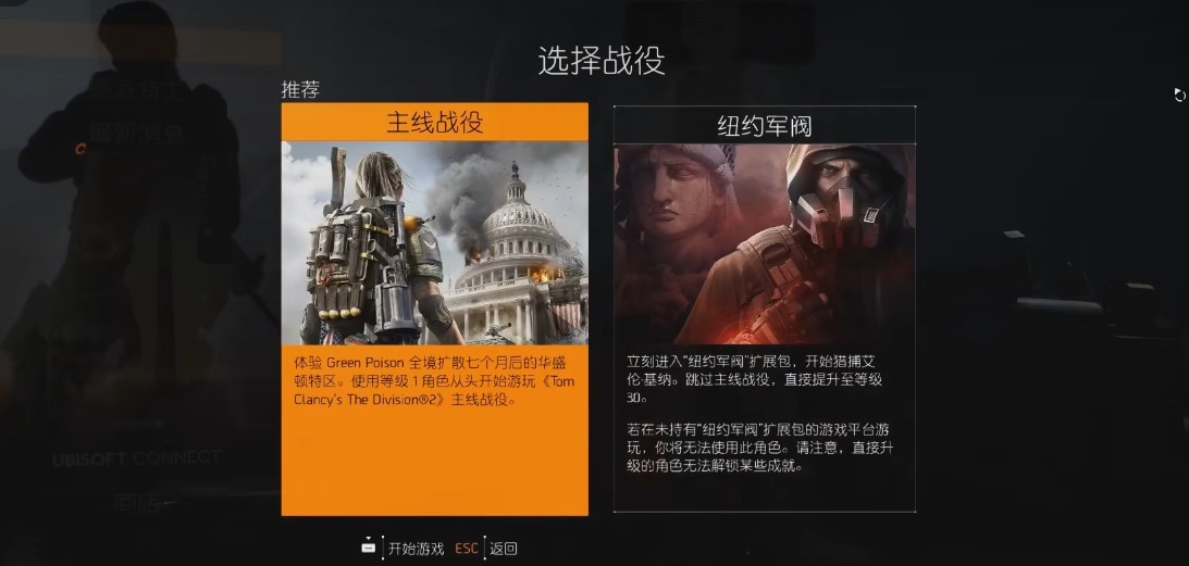 首先是购买建议,如果你只是想体验一下全境2的剧情和游戏性,那么只购买本体是没什么问题的。如果你打算玩一段时间,那么dlc纽约军阀是肯定要买的,因为如果不买你只有30级而别人是40级,且不提游戏内容没有别人多,装备数据也是比别人差。购买了dlc终极版的玩家在第一次登录的时候可以选择从零开始还是直接跳过华盛顿直接到纽约,个人建议还是从零开始会好一点。毕竟游戏需要一个熟悉的过程,慢慢升级解锁道具、技能、各种特长,可以让新人了解到游戏的各方各面。直接到纽约就等于跳过了别人超过一般的游戏时间,游戏理解自然会落后很多,更不容易令人眼花缭乱的装备技能了。