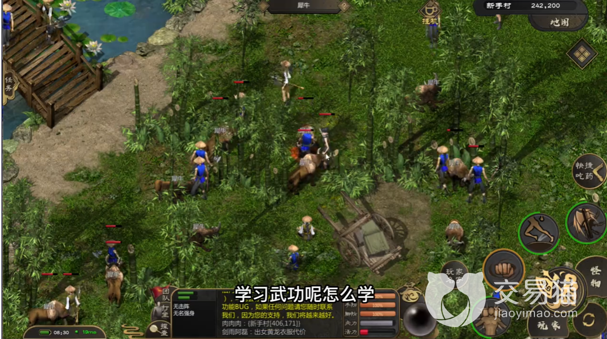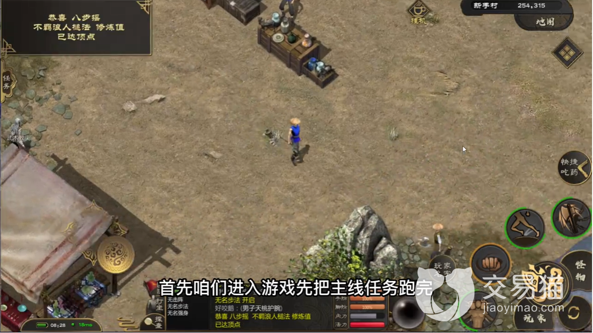 新手玩家砍怪也不用慌,因为新手的攻击力和法力都是满的,所以不用担心状态问题。当然,后续的持续技能,比如步法以及强身法都可以后续再练。玩家在打怪之前也需要做好恢复技能的准备,比如一些药草和药品,这些都是必须的,以免发生意外。战斗之前玩家还需要注意把自己的功法给拖到技能栏里面,这样就容易在打怪时释放。玩家们在攒够肉之后就可以开始学武功了。武功在游戏中是至关重要的。玩家只有不断学习武功才可以打败各种怪物。