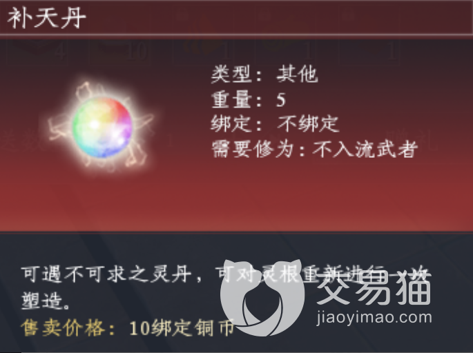如果是想要获取补天丹,这里有很多种方式可以拿到。其中一个是接取补天丹的任务,然后去往陶氏武馆的左侧,在此处的一号卖家手中获取304棵灵芝,换取152个手镯。而在后面的三位卖家那里都换成地黄丸,最后去往陶氏武馆的左边送母鸡,只要送出去15个便可以获取到五个补天丹。
