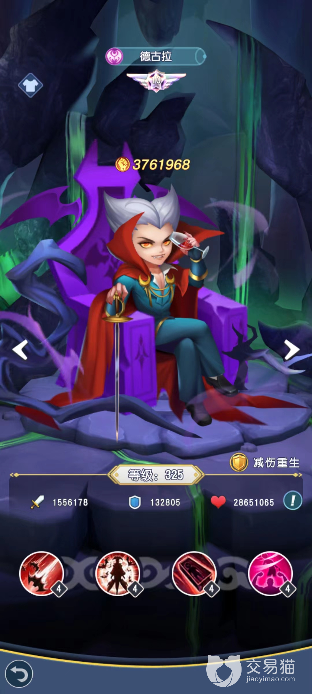 德古拉是非常强的前排肉盾,利用主动技能黑血之潮召唤出蝙蝠对敌方造成伤害,并且有几率叠加流血效果,被流血所影响的敌方目标每回合持续损失生命值。虽然这个技能的单次伤害不高,但是可以重复释放10次,每一次都锁定不同的单位,运气好了甚至可以让敌方很多英雄都带上流血。技能升到满级后每获得一层流血效果,自身都能提高减伤,这样叠加下来就使得德古拉变得非常坚硬,并且在被动的影响下还能够获得复活一次的效果。