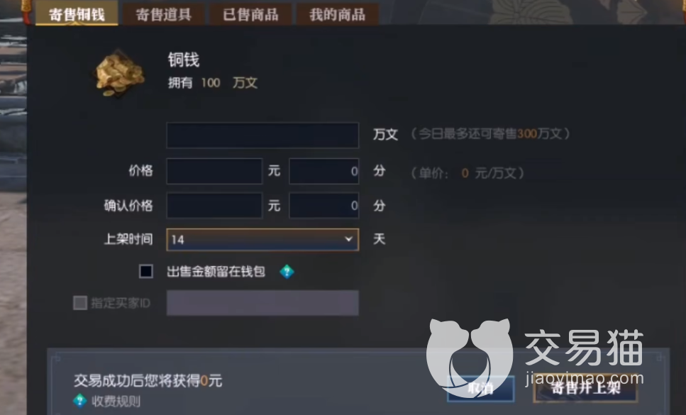 角色交易最低出售价格为299,最高可以上百万,而且挂售期间角色不能登录,还有三天验货期与9%的交易手续费。总体来说,使用藏宝阁进行交易比私下联系交易更为安全。