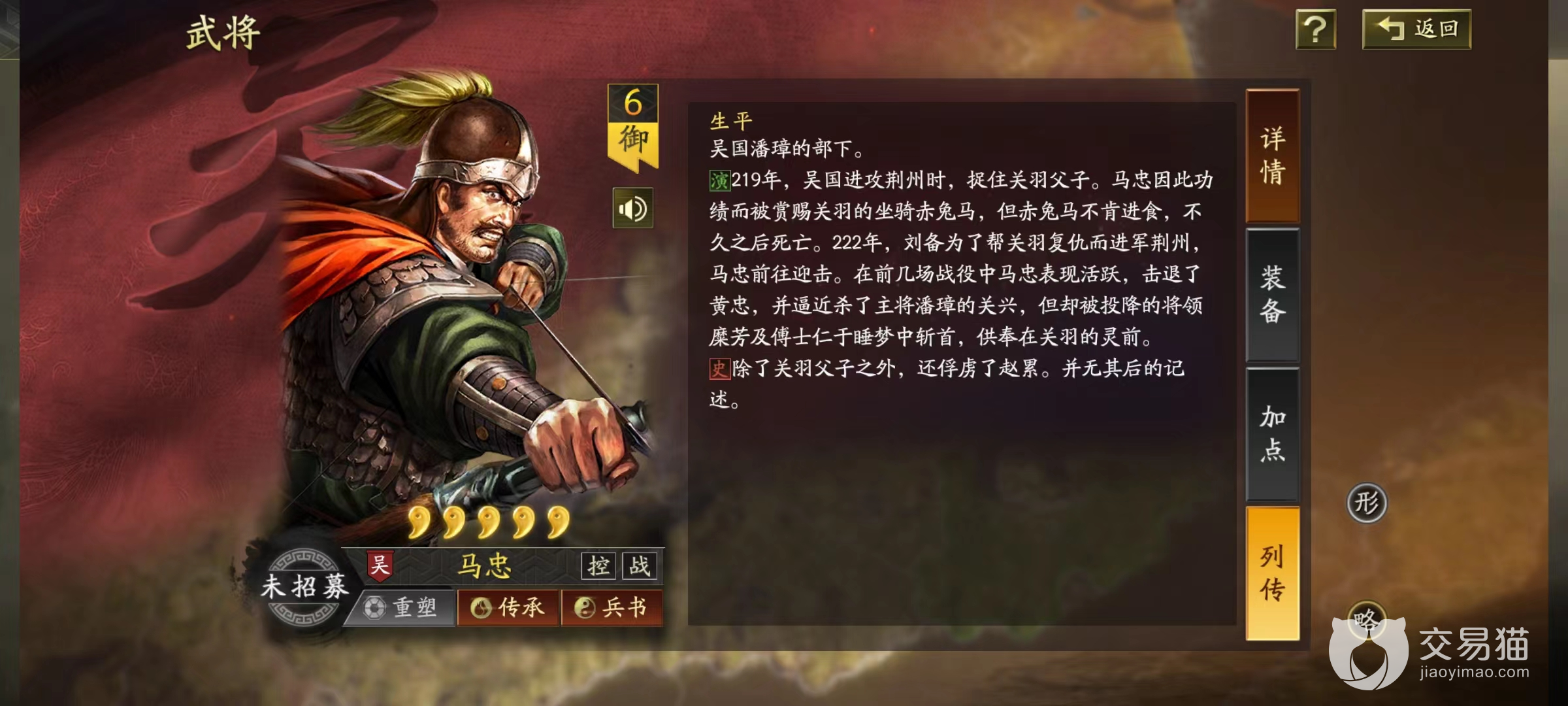 而且马忠非常适合打一些太尉盾,吴骑这种利用单核打输出的队伍,目前非常强势的司马懿和孙尚香等一旦被捕获住,对方在两个回合内将会丧失绝大多数输出,我方可以抓住这个机会直接反败为胜。相信现在大红大紫的单核玩法将会被马忠限制住,所以小编的建议是尽量获取一个有备无患。