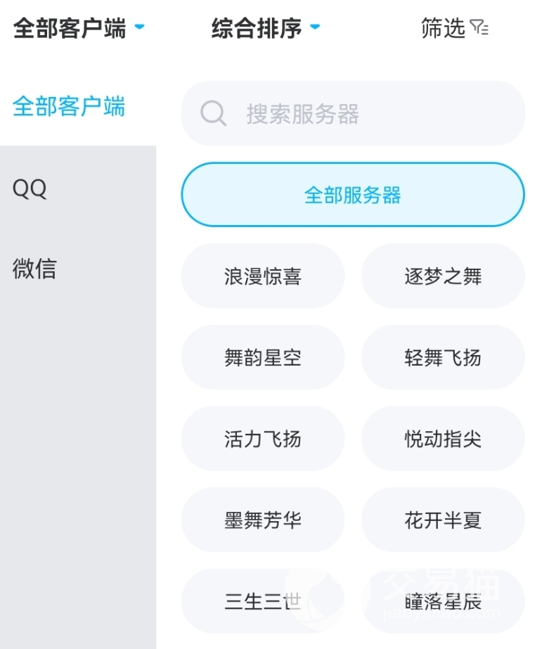 1.大部分区服的账号,均能直接买到。这类联机游戏,和好友一起游玩的话,可以享受到许多独特的乐趣。目前手游版的QQ炫舞,已经开启了多个区服,如果你的朋友早已在某个区服建了号,并达到了一定的等级,这时你要想和他们一起跳舞,就可以直接到交易猫进行买号,大多数区服,在交易猫内,你都可以买到。