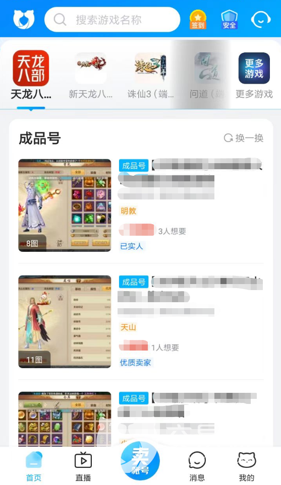1、目前的天龙八部玩家们,可以直接在交易猫当中选择关注这一款游戏,然后首页当中就会为大家展示出当前最新的账号交易信息,玩家可以通过商品的价格以及账号内所包含的内容来进行判断是否符合自己的预期,当然喜欢PK的玩家,最好去优先选择角色等级较高的游戏号。