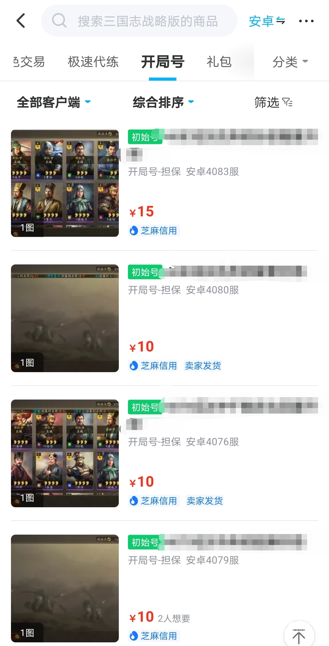 自抽号是初始号的一种,这类账号没有经过培养,主要是累积了不少资源。小编推荐大家到交易猫app上看看,三国志战略版的交易板块中,自抽号在开局号这一类别下,我们可以看到,在售账号数量非常多,各位买家可以尽情挑选。