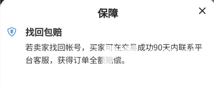另外,平台对部分符合条件的订单会增加信誉度标签,用来显示其优势。例如标记“找回包赔”的订单就说明此订单支持交易成功90天内的找回包赔,可以获得全部赔偿。
