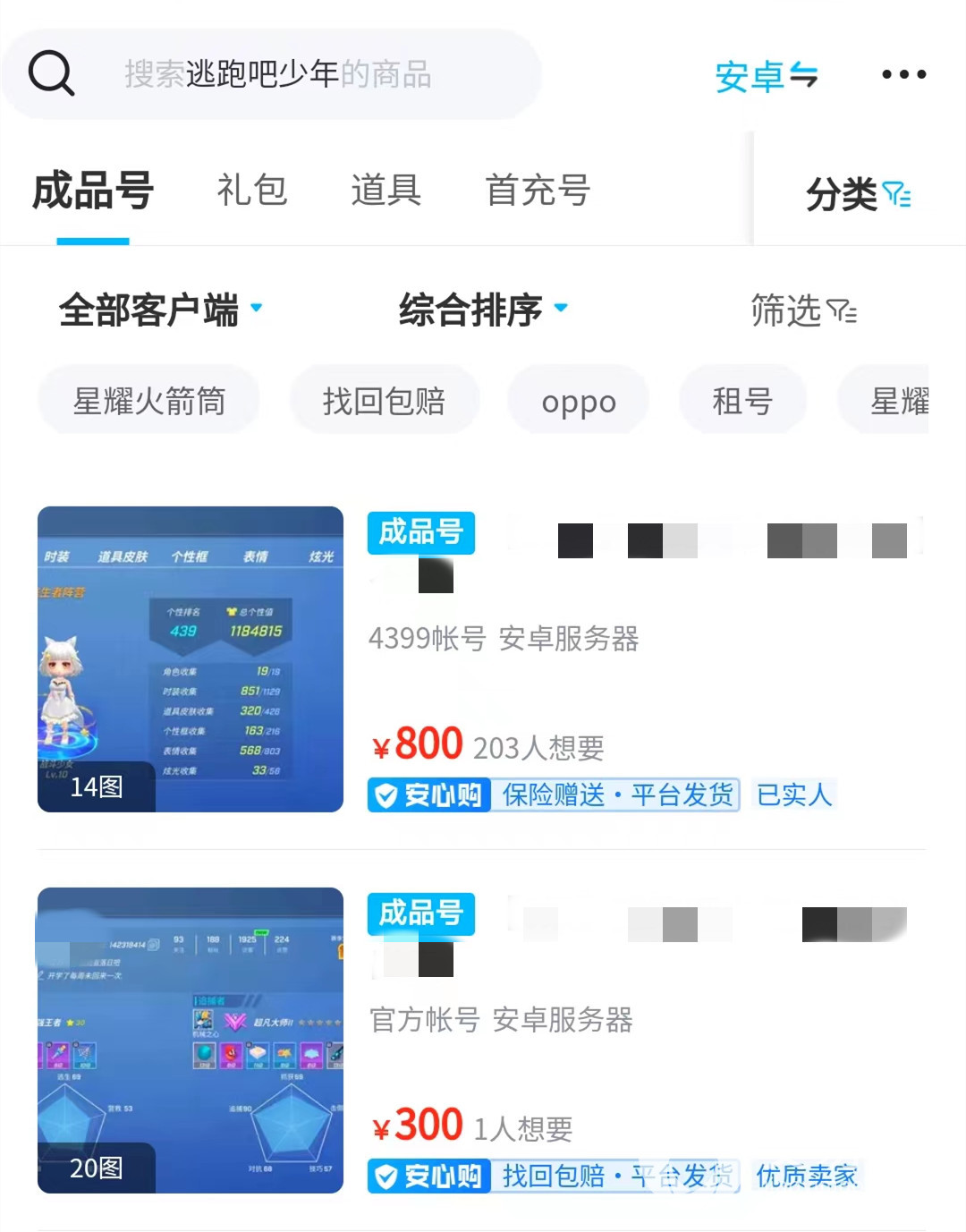首先在进入逃跑吧少年这个游戏专区以后,你会看到非常多的账号类型,平台还有验号服务,所以你看到的账号信息都是真是可靠的,在这里购买账号的的选择性是非常多的,比如同类型的账号你或许能搜出上百个商品,买家可以任意进行选择。