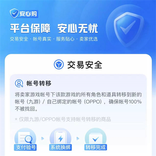 如果大家对安全在意的话,就应该能看到平台里面给小伙伴准备了安心购功能,除了能提高服务效率,也能保证交易安全,卖家最担心的就是账号出售效率,如果是诚信卖家,也享受了安心购的服务,那么就不需要担心了,因为官方给予买家承诺找回包赔,针对这部分商品的保障是能让用户交易更加放心的。