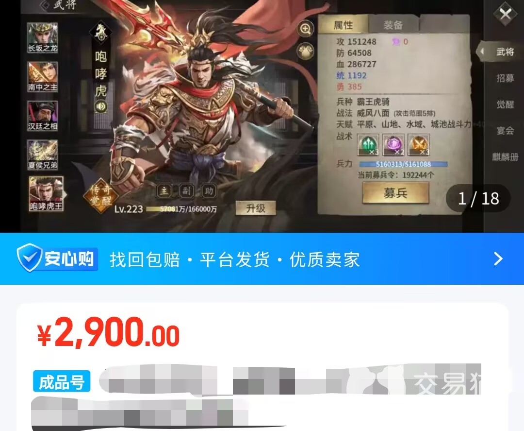 以上就是攻城掠地成品号哪里能买到的所有相关内容,这种账号现在出售退游的很多都是氪金大佬完玩剩下的,买到之后就是区内的战力排名榜一榜二,所以价格也是相当贵的,想要更加靠谱安全的交易一定要点击上方链接选交易猫平台。
