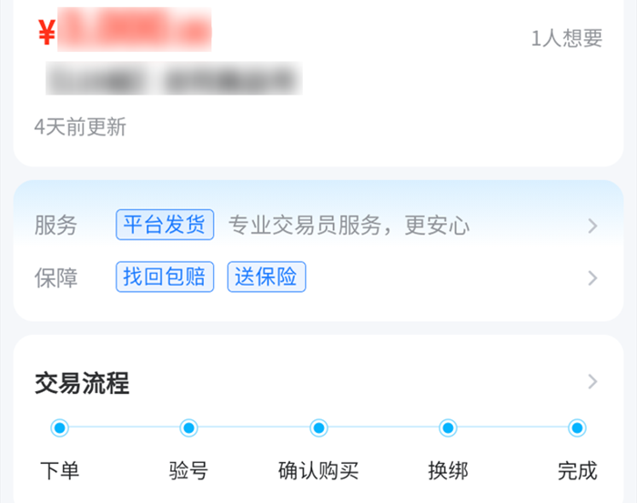 另外,交易猫的购买流程也是非常完善的,有很多账号都带有验号的服务,在官方权威的验号服务下,虚假宣传行为将无所遁形,不仅是夯实了安全保障机制、确保了账号和交易的真实性,更是维护了我们买家的基本权益。而且通过平台客服的优质服务,能够做到在交易猫平台内完成账号的换绑,一部分商品还带有转移功能,不需要大家事先下载更新好游戏客户端,非常方便。