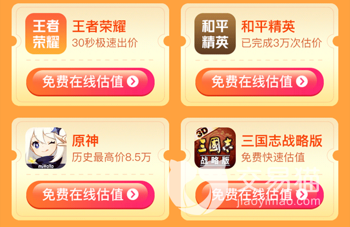准备购买账号的大家一定也在顾虑,如果自己买亏了怎么办?在交易猫中就有办法能够免除顾虑。交易猫带有一个官方的估价工具,对三国志战略版这款游戏也提供了良好的支持,我们只需要在估价器内输入各个势力的五星武将、赛季段位、战法等基础参数,就能够进行快速估值。这个估值的结果还是比较准确的,能够符合市场的规律以及行情,带着这个价格去选购商品,想亏都有点难。估价器的操作十分简单便利,值得大家尝试一下。