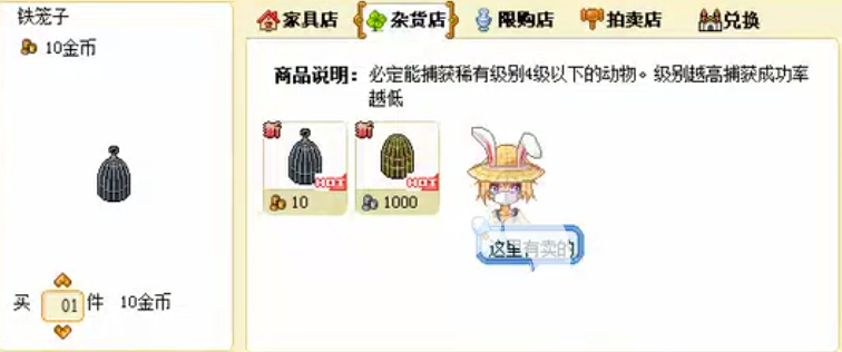 8、当宠物血皮了,也没有逃跑就直接点击大家在商店里购买的笼子。