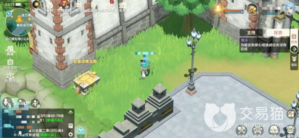 算是一个较为白给的宝箱了,我们只需要在法兰城这张地图的探索度达到100%就可以得到它的钥匙。基本上对于一些收集党或者全成就玩家来说,这点不算什么。对于普通玩家来说,需要将所有的传送点、探索点、爱心任务和挑战任务全部打完才行。