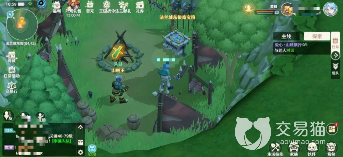 作为较为初期的宝箱,辰东的传奇宝箱在法兰城东边郊区,在一个山坡下面会有一个强盗的营地,这里盘居着一群山贼,他们看守着一个宝箱。打开这个传奇宝箱的钥匙,就要去击败附近的山贼王头目,完成相应的挑战任务击败山贼王。该任务除开给我们一把钥匙以外,还给我们带来一些其他的物质收益,还是不错的,练度需要15级左右。