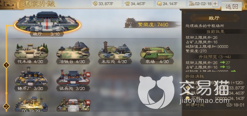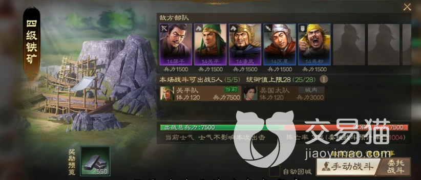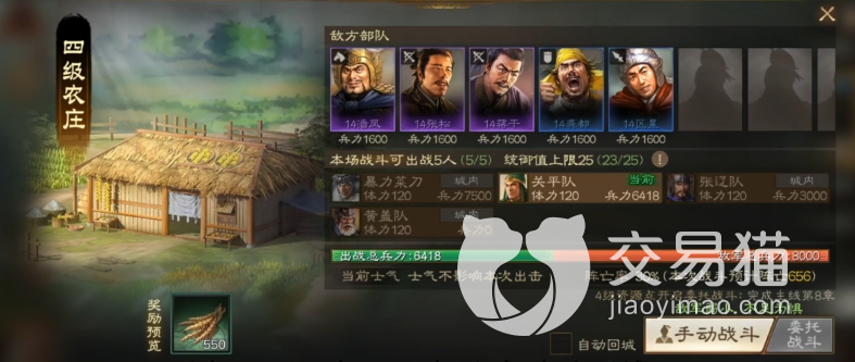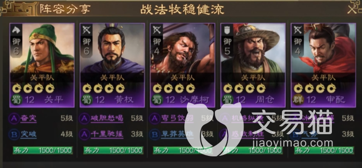 在战前准备上,输出流玩家需要做的是保证队伍里的武将能达到12级,加上战法五级以上,单武将兵力要平均达到1500以上,这样可以保证玩家可以在四级地的战斗中,可以更快的拿下战斗,而越快的战斗往往也就代表着更低的损耗。在开荒期,玩家可以选择关平,沙摩柯,黄权等人组成的中配输出队提高输出,主城三级差不多就能成型了,难度相对较低。当然,如果你有更高的橙将,同时自身统御值达标,那么用顶级武将碾压过去也不是不行。