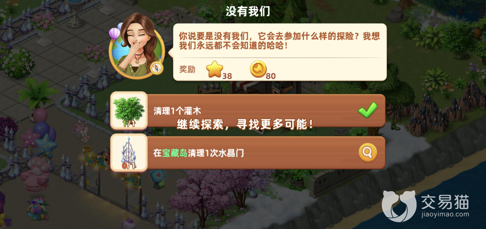 前面说了,这是一款休闲类型的游戏。其实游戏的过关基本上只需要我们消耗一些素材就可以达成要求,基本上三星三个要求,只要完成了就可以通关剧情来到下一阶段,另外,在过关的时候要注意一下它的过关要求,先不要急着开采地盘获取资源等等,按照要求过关就不容易卡关。比如说他需要20个香蕉,那是你因为缺木头,把香蕉树全砍了,发现香蕉不够就只好重新再种,非常的麻烦。所以特别是过关党或者说速通党一定要了解要求,过关才可以较为流畅。