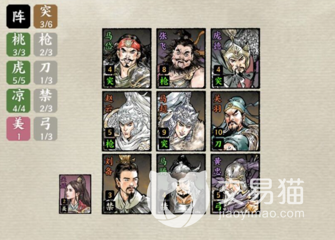 第一个推荐阵容的主推角色就是关羽为首,张飞,马超,赵云还有曹操刘备以及黄忠为辅,这个阵营中的角色在游戏当中都是稀有度比较高,并且每一个角色的属性在游戏当中都是非常平均且极高的存在,因此玩家如果使用这一个阵容的话,每一个英雄都可以拿出来单打独斗使用。同时单论关羽、赵云、刘备、曹操以及马超这五个不同的角色,在游戏当中稀有度算是顶级,并且拥有极强的输出能力,刘备和曹操作为主公,咱们就不用说了,关羽、赵云、马超,哪一个不是大将。