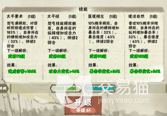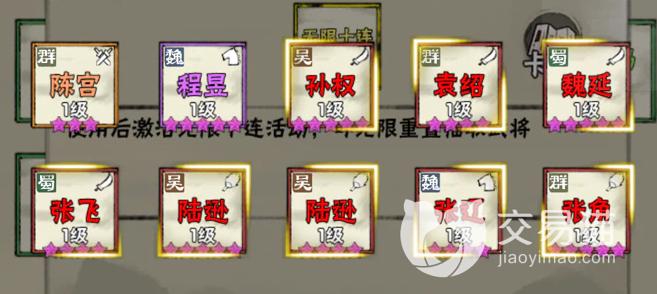 其实其余卡都无所谓,重要的是开局十连中最好要有张角以及貂蝉。张角是一个非常强力的辅助角色,可以增加伤害的上限,非常有用,四个技能两个可以为队友增加攻击力,两个可以为队友增加暴击,让队伍输出有很大提升,是必拿角色。
