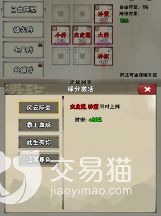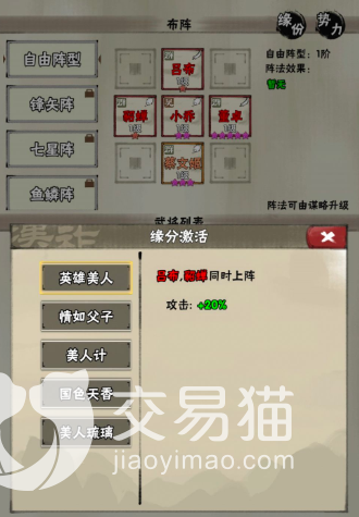 另外还可以弄一个吴国阵营的阵容,上场孙策,孙权,大乔,小乔太史慈几个角色,大乔小乔的江南春色可以增加男性角色的最终属性,此外这套阵容的太史慈也可以换成周瑜,但是玩法就需要保着孙策打,上太史慈主要的目的就是减轻孙策的输出压力,三辅助两输出,并且强度都还可以,主要是孙策和太史慈都比较肉,缘分效果buff一上就更肉了,所以容错率很高,此外这套阵容最大的特点是获取难度比较低,这些人还是经常容易抽出来的。