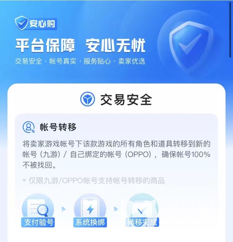同时,想造梦西游外传这样验号保障账号内容的权益外,交易猫平台还有账号转移的服务,但仅限于部分的渠道账号才拥有这个服务,感兴趣的玩家可以上交易猫平台进行了解。在卖家游戏账号下该款游戏的所有角色和道具转移到行账号,确保账号不被找回,这也是极大提升了买家的安全性,让虚拟账号这类的商品能够买卖自由。