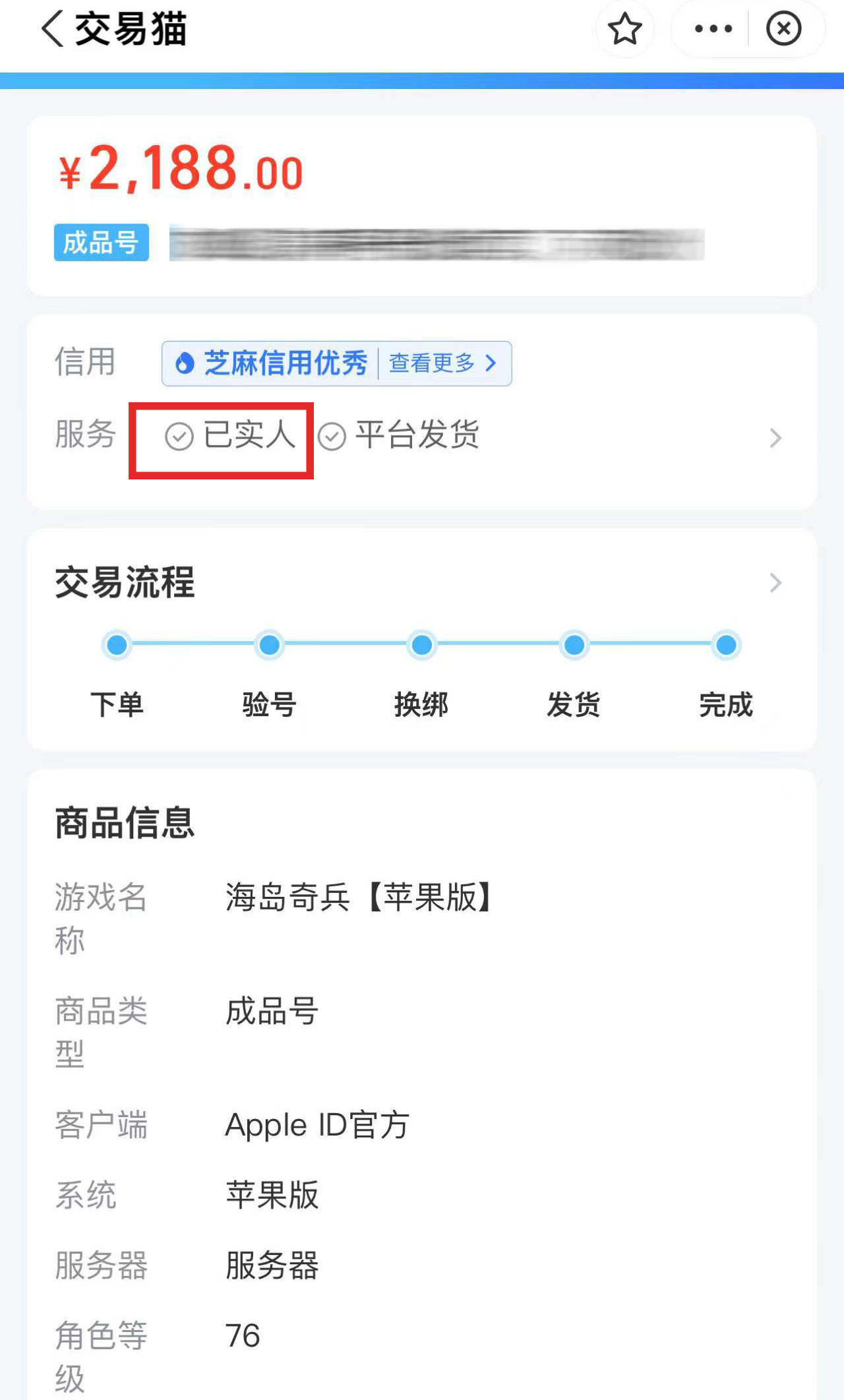 大分部人都对账号交易存在担忧,担心账号出现问题。这个不用担心,每一个卖家在上传账号的时候都要经过官方验证,例如实名认证等等,如果发现账号有问题的话,就可以及时找到卖家,不用担心出现安全上的问题,可以放心购买。