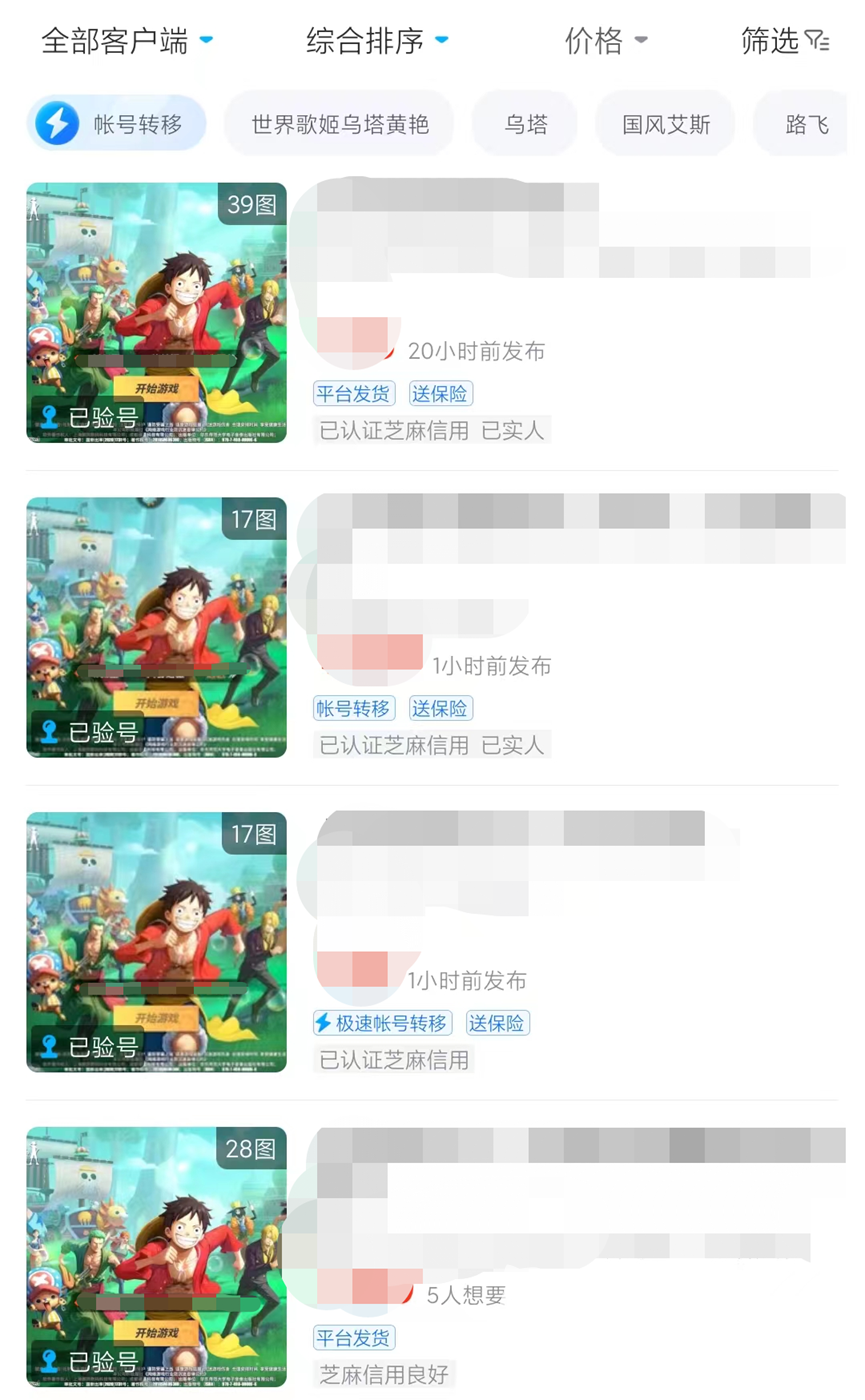 交易猫平台使用用户超多,航海王热血航线作为一款热门手游,平台内的账号交易更是频繁,很多游戏玩家都使用交易猫来进行账号的交易,每隔一段时间就会有新的成品账号上架平台供想要买号的小伙伴挑选,部分送保险的账号交易更加安全哦。
