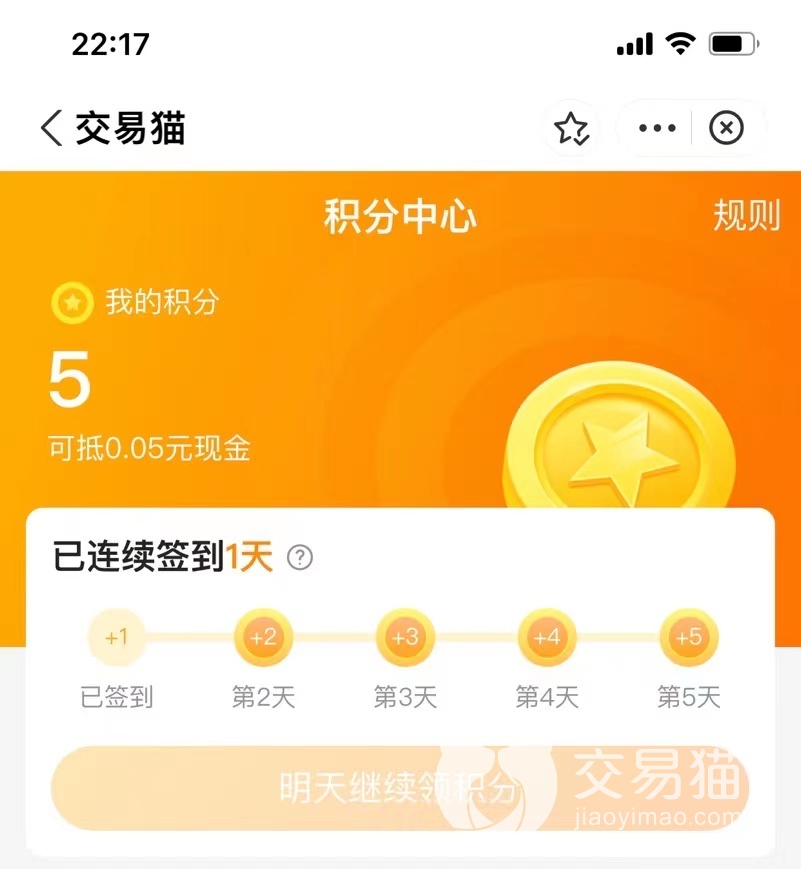 在交易猫平台上,大部分的商品都支持用积分抵扣现金使用,那么如何更快更多的获取积分呢?首先每日签到的积分是可以免费获取的,连续签到能获取更多的积分。其次,在购买平台商品交易成功后,也会按照一定比例返还积分,让买家能省则省。