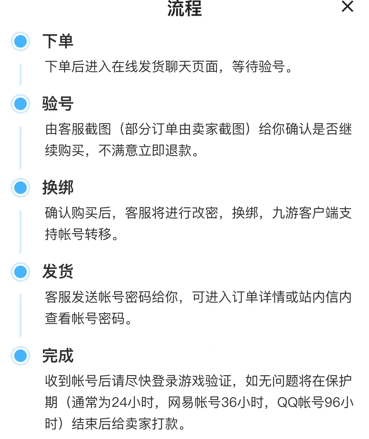 在交易猫中,交易过程是可以完全放心的,首先在买家拍下账号后,就会进入到在线发货的页面了,交易的新手也不用担心,全程会由24小时在线的专属客服进行引导,在客服上号截图后会与买家进行确认,之后就可以换绑和修改密码了,完成交易后会由一定时间的保护期。