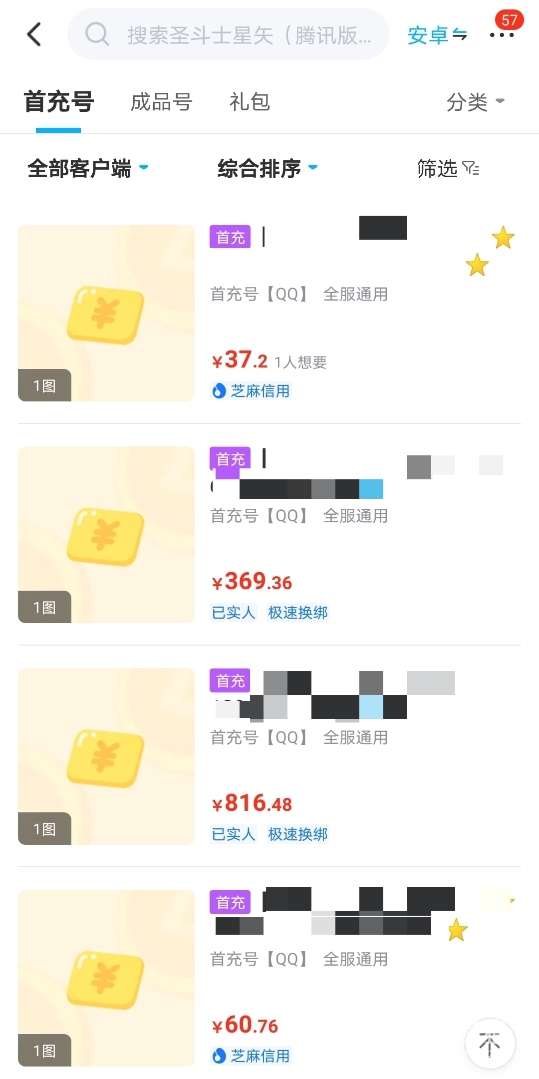 交易猫APP为一众玩家提供了自由交易的平台,交易全程安全又便捷,吸引了超多用户进入平台,所以很多卖家会选择在交易猫平台卖初始号。目前圣斗士星矢游戏再平台上有首充初始号在售,价格从二三十元到大几千元不等。首充初始号相当于是提前以低折扣充值好了游戏币或专用币,这比玩家从游戏内渠道充值便宜了不少。
