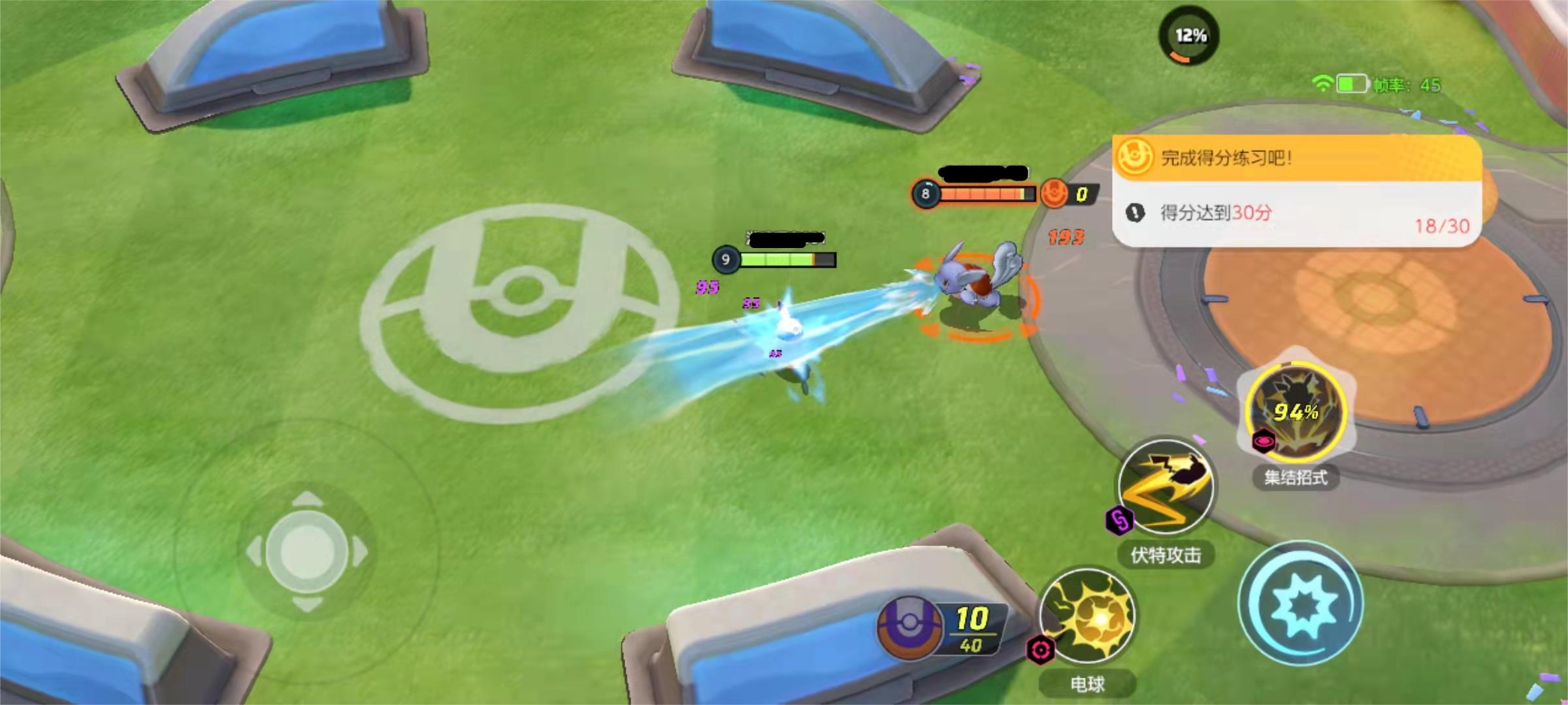 值得一提的是,在30分任务时,地图中会刷出成片的野怪与一只敌方训练家的宝可梦,这里不用太慌,只需要先把小怪一个个清理完毕,然后再折返回得分区域附近,与训练家宝可梦展开对决即可,虽然它会有更为强大的数值和技能,但你也可以凭借灵活拉扯来一点点为集结技充能,然后在最后时刻释放取得胜利。