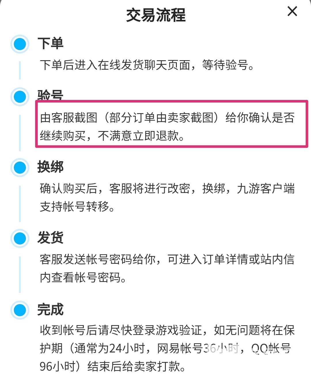 很多人会问,在交易猫APP上买号就能保障交易安全么?是的,买家与卖家的交易是全程有平台介入的。下单后,买家可找到发货客服确认账号,如果发现账号存在任何问题,都能取消订单。